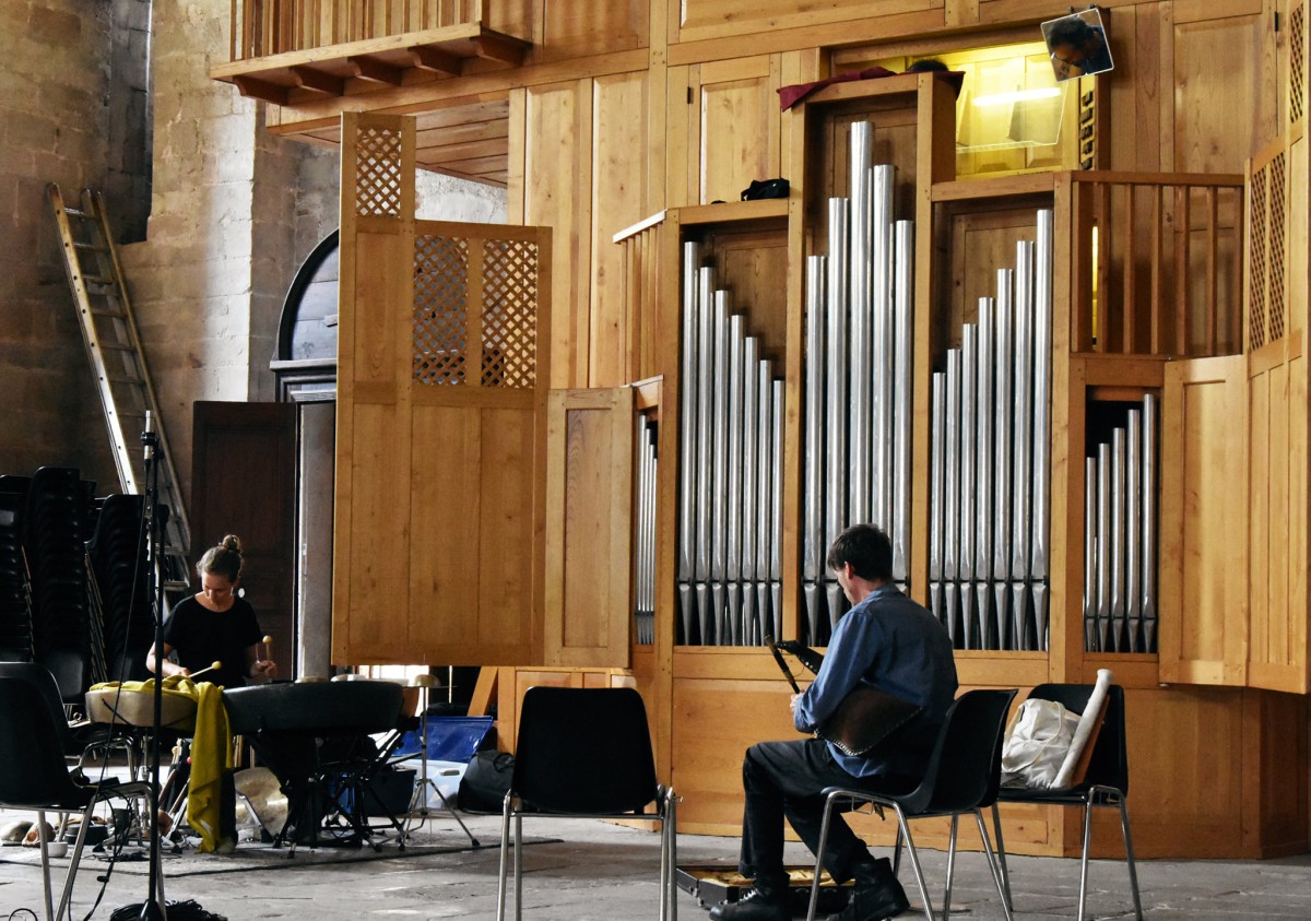 Julien Desailly (cornemuse), Camille Emaille (percussions), Jean-Luc Guionnet (orgue)