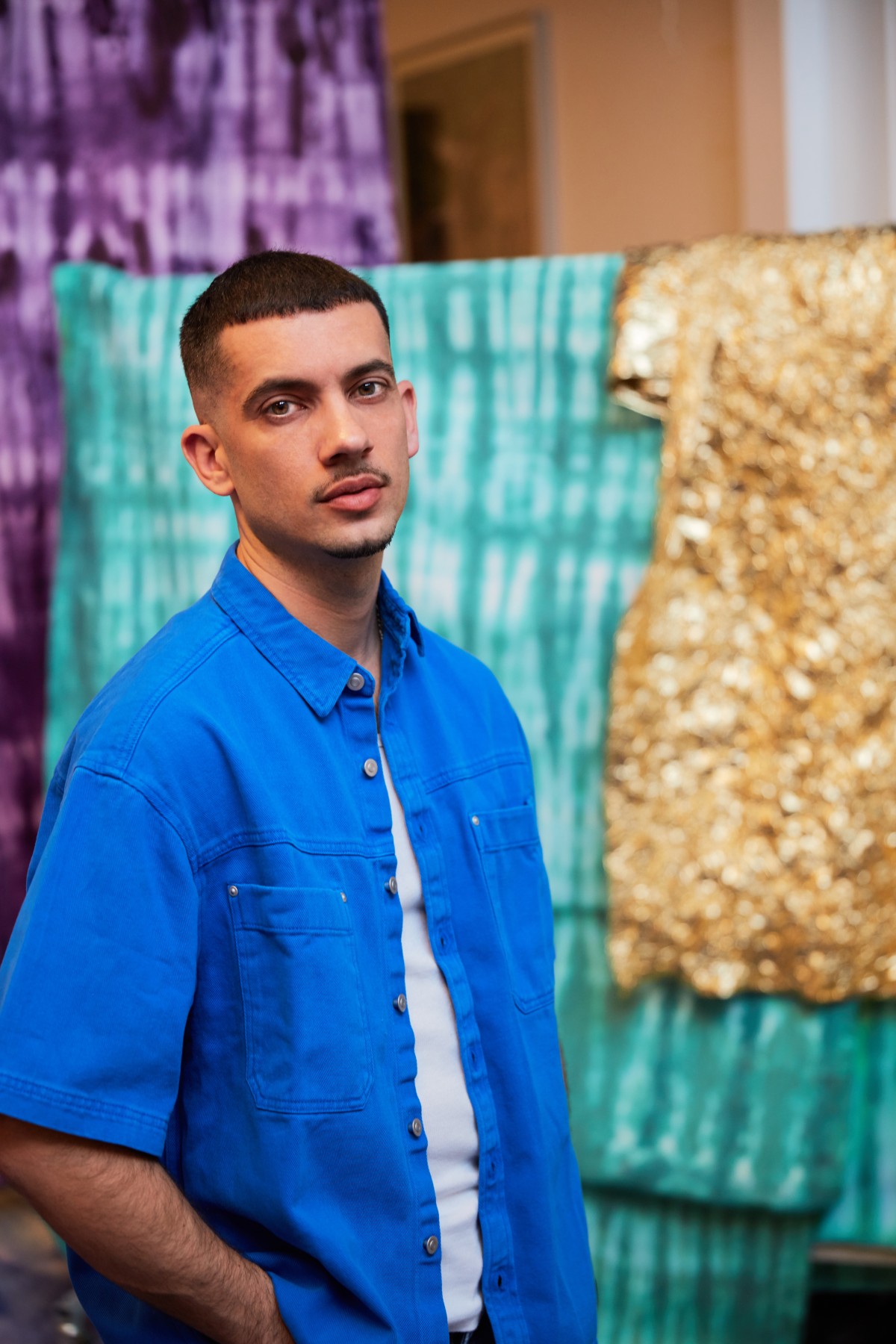L’artiste trouve son inspiration dans l'hommage aux héritages laissés par les figures des mouvements historiques de libération. Dans un style de collage combinant photographie, sérigraphie, peinture et impressions numériques, il déploie une peinture en mouvement qui revisite l'histoire tout en questionnant le statut même de la peinture dans le musée et l'espace public. Drapeaux, bannières, tapisseries et capes cérémoniales se superposent pour créer de grandes scénographies immersives et illuminées qui interrogent la représentation du pouvoir, son cérémonial et son inversion carnavalesque. Pour Raphaël Barontini, remettre en question le canon de l'histoire entourant les cultures et les territoires ayant connu l'esclavage ou la colonisation reste une priorité. Son travail a été exposé dans des institutions du monde entier et à l’occasion de plusieurs biennales internationales. En 2025, l’artiste présente également une grande exposition individuelle au Palais de Tokyo. Il est représenté en France par la galerie Mariane Ibrahim.