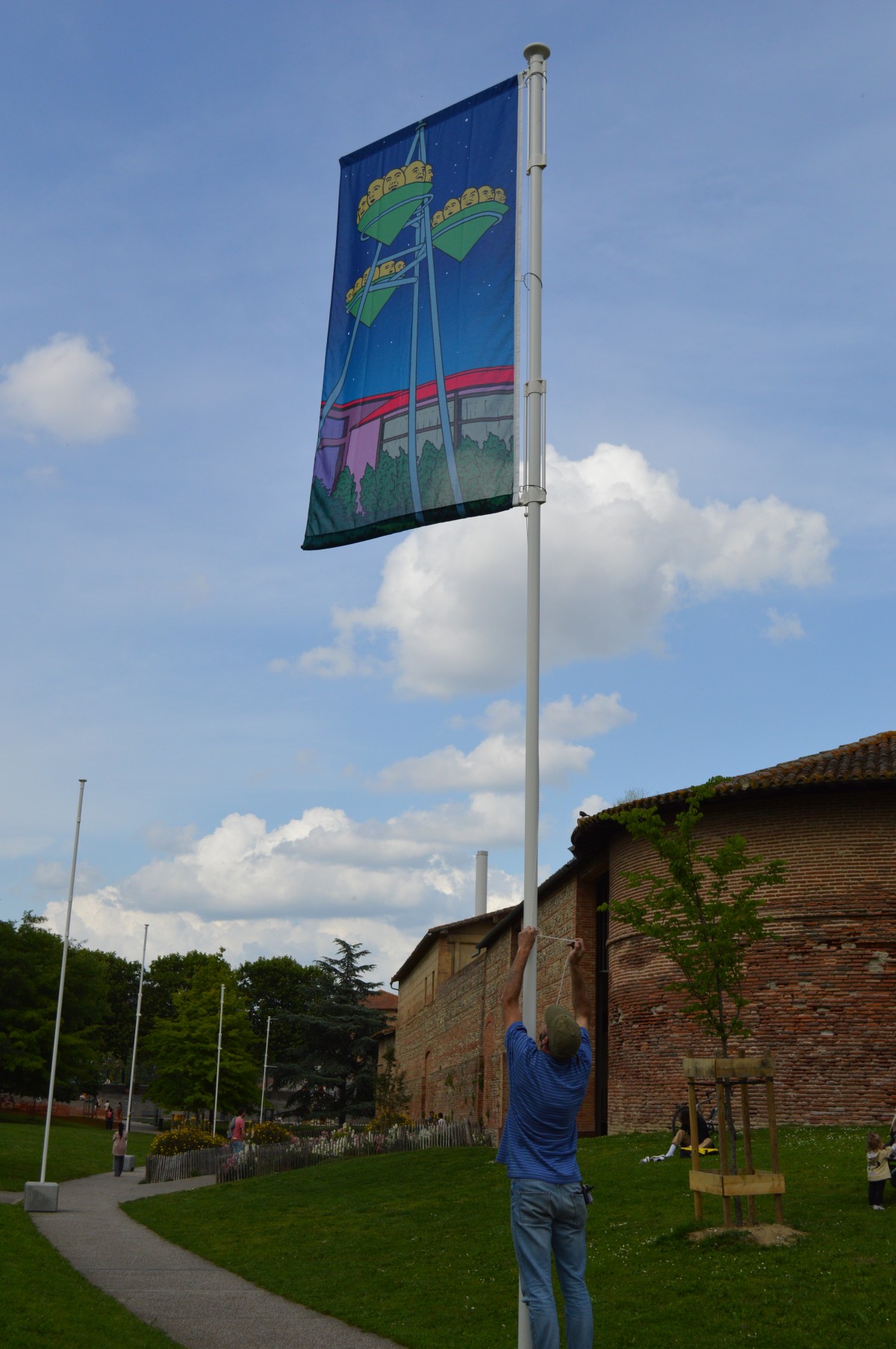 matali crasset invite l’artiste Pierre La Police à explorer les relations multiples que les hommes entretiennent avec leur environnement naturel. Il y répond avec humour en proposant une série de dessins inédits présentés sur des drapeaux fixés à de grands mâts. Signal visible dans la ville, cette proposition étonnante où l’homme et la nature se confondent sur un registre absurde, souligne avec tendresse et ironie le malaise de la vie contemporaine.