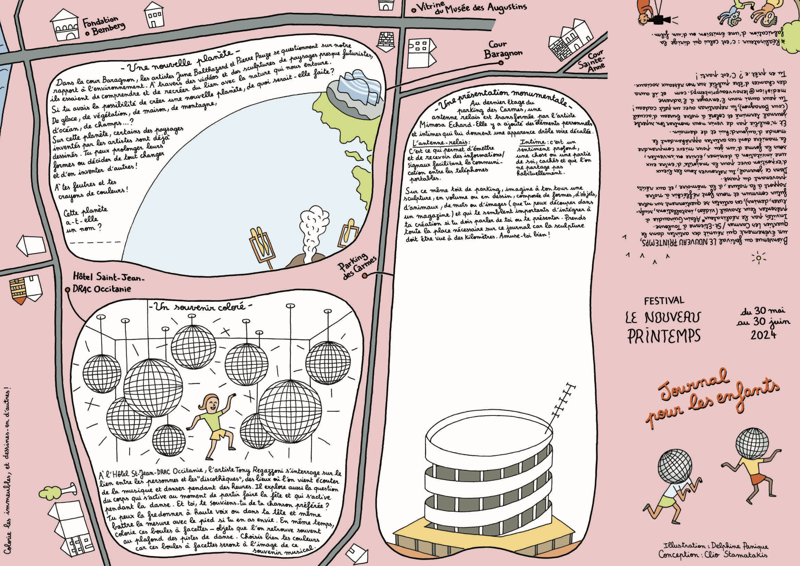 Invitée par Le Nouveau Printemps, l’illustratrice Delphine Panique imagine un journal de visite pour accompagner les enfants de 6 à 12 ans dans leur découverte du festival.